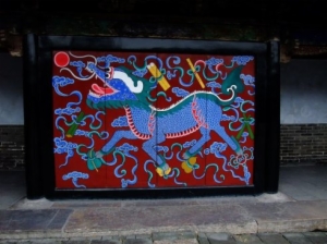 戒贪图是孔府内宅门屏门上的一幅壁画,画中有一只貌似麒麟的“贪兽”,这只“贪兽”贪得无厌,最终落了个葬身大海的下场。此地的现场教学以此壁画展开,进而揭示出控制好自己的欲望是为政者的必备素质,是为政者清正廉洁的基础。