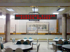 首先在会上,科长宣布了要将窗口服务作为今年工作的重点:推行实名挂牌服务,更换员工新工作服和工牌号,增设餐巾抽纸项目,常设评价建议制度,设立实图点菜宣传专栏,使用温馨的《就餐服务卡》,而且在餐厅一层安装LED显示屏公布菜价,门厅安放免费擦鞋机。